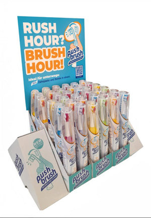 I often brush my teeth, especially after eating. When I'm out and about, I always use chewing gum! With Push Brush it's super easy on the go! The toothpaste leaves my mouth feeling very well-groomed and clean and has a very pleasant, mild mint flavor.